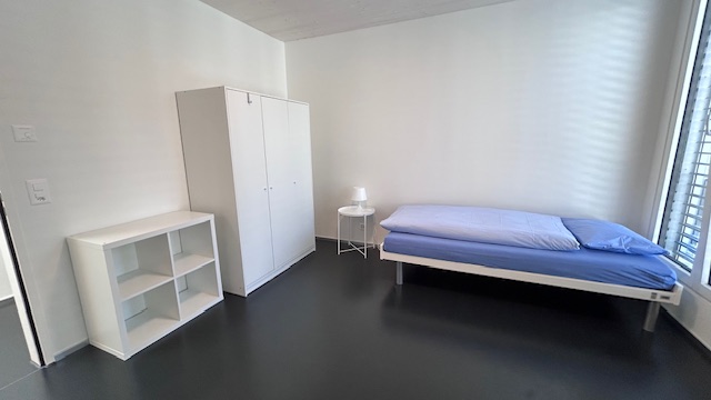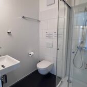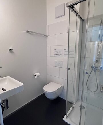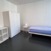 There are 8 lockable rooms with their own shower/WC. The residents share a communal kitchen, a spacious living/dining area and a balcony. A small service room with washing machine and tumble dryer is available to all tenants. The flat is fully furnished. The rent includes heating/utility costs, electricity and WLAN internet connection.